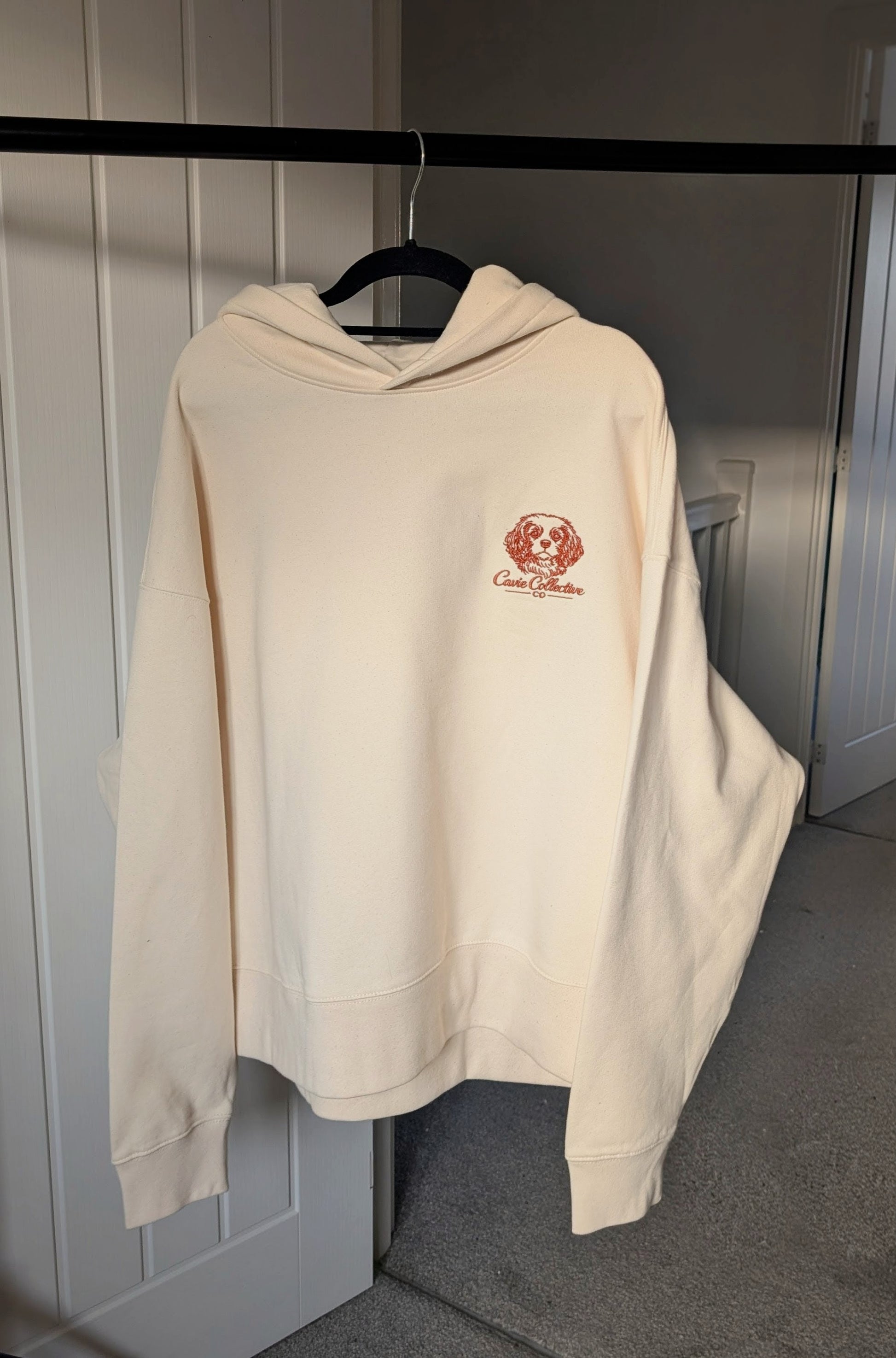 Made from 50% brushed organic ring spun cotton and 50% recycled cotton, this hoodie feels soft, structured, and consciously made. It’s a premium 400 gsm heavyweight fabric, which means it’s thick, cosy, and holds its shape beautifully — perfect for chilly walkies, coffee runs, or sofa cuddles after a long day.